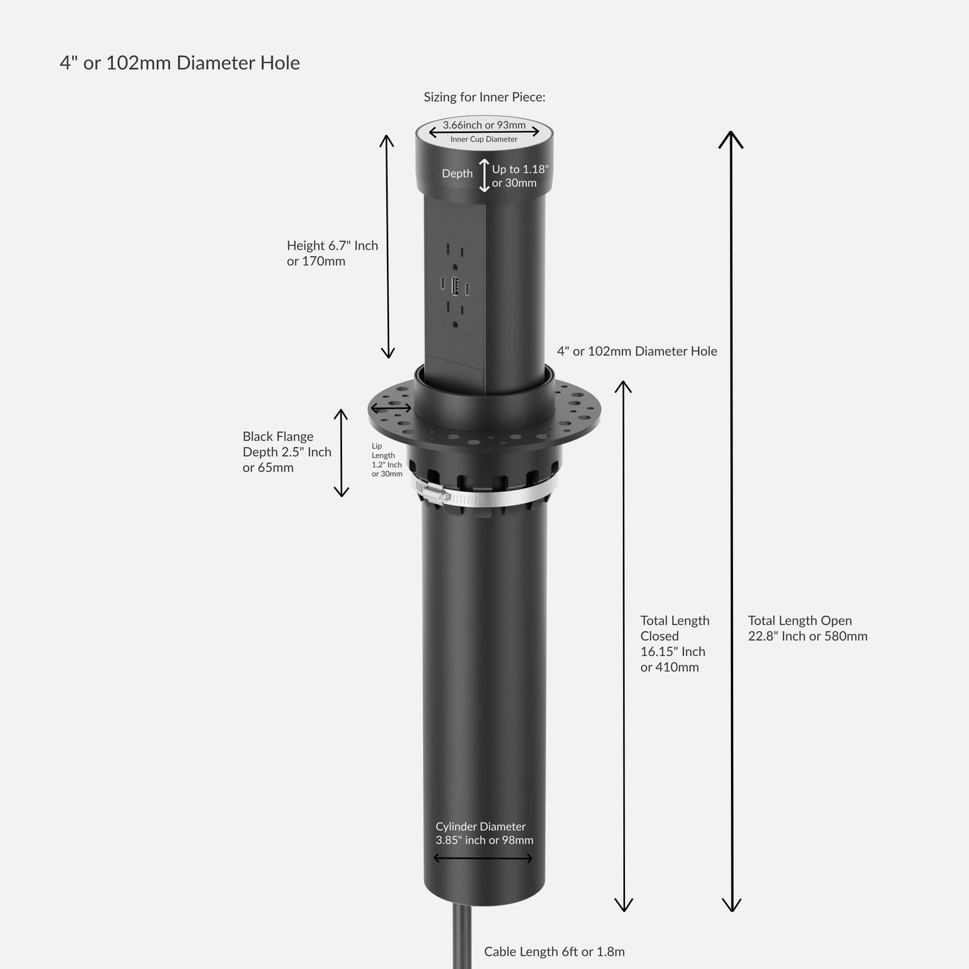 Point Pod Connect Black, Motorized Pop Up Power and Charging USB